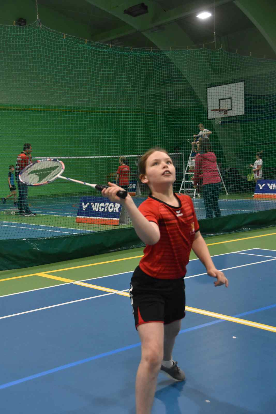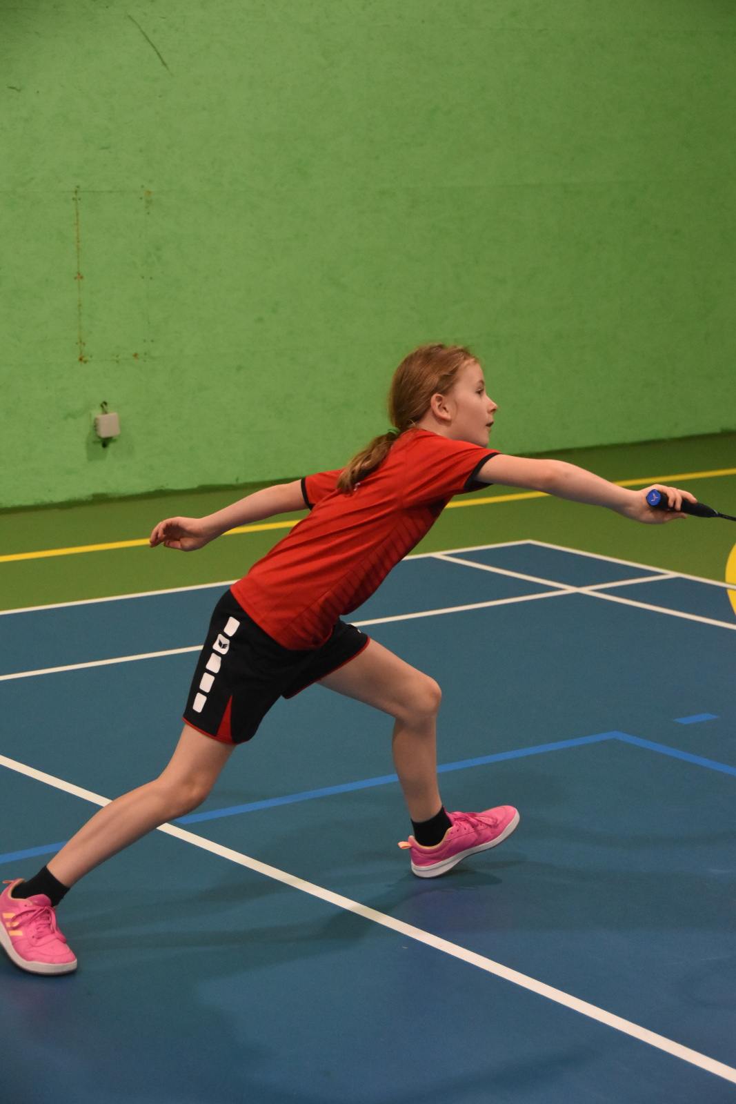 Šlo o nejpočetnější kategorii s 12 hráčkami do 11 let. Za Kynžvart bojovaly Eliška a Barča Hlaváčkovy, Elenka Brtníková, Terka Lišková a Štěpánka Landová. Holky byly rozděleny do 3 skupin po čtyřech, nejlepších 8 postupovalo dále do pavouka, zbytek hrál o pořadí. Eliška, Barča i Elenka postoupily hladce do pavouka, Terka se do něj dostala v předkole. Štěpánka, která s badmintonem začala teprve před měsícem, si vedla skvěle. Ve skupině získala jeden vítězný set a ve hře o pořadí dokázala jednu soupeřku porazit 2:0.