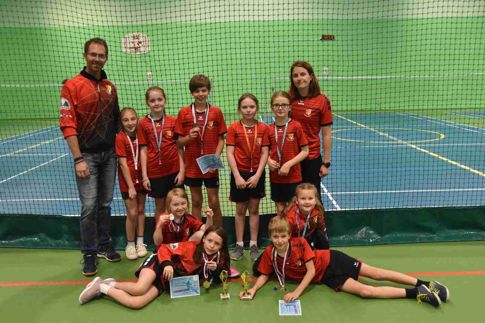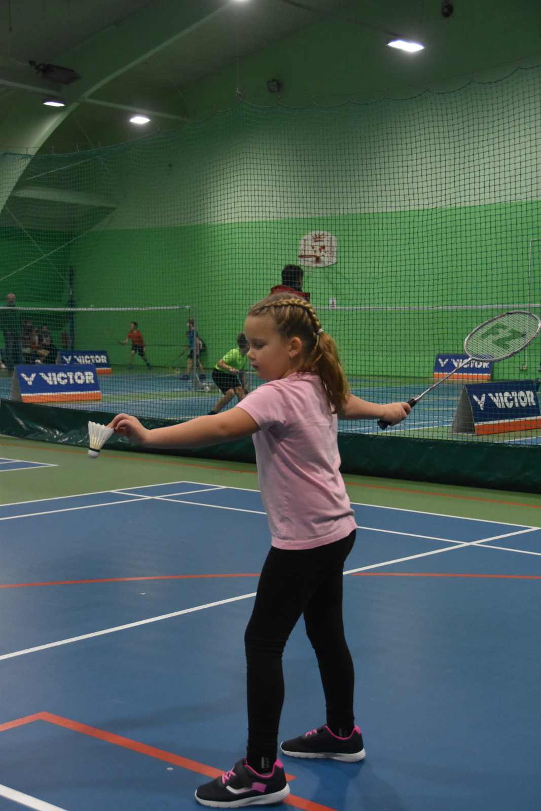 V této kategorii startovaly holčičky do 9 let a bylo jich 6, z toho dvě naše bojovnice Mája Lišková a Emča Kunová. Hrálo se systémem každý s každým ve formě mini badmintonu – se sníženou sítí na polovině kurtu. Holky byly velmi vyrovnané a o výsledcích rozhodovaly jednotky bodů. Mája se nechala porazit pouze jednou a získala stříbro, Emča jako začátečnice dokázala překonat dvě své soupeřky.