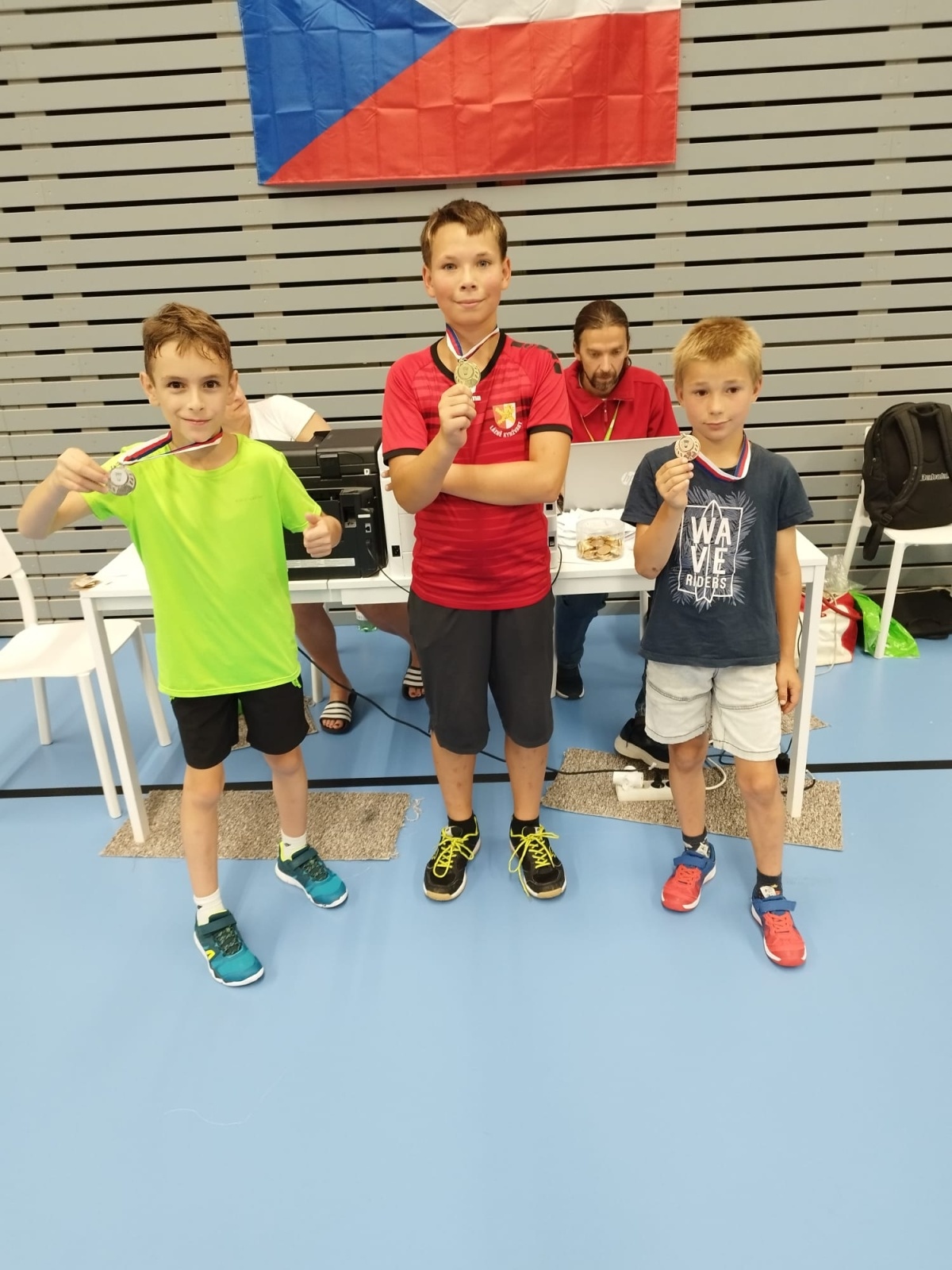 Celkem devět chlapců bylo rozlosováno do tří skupin po třech. Kuba svou skupinu vyhrál, když si lehce poradil se soupeřem z Teplic Martinem Vinterou a v napínavém zápasu na tři sety porazil pražského Matouše Brůhu. Dále pokračoval do tříčlenné skupinky vítězů skupin, mezi které se již rozdělovaly medaile. Zápasy už byly velmi vyrovnané, přesto Kuba bez ztráty setu potvrdil své kvality a zvítězil. Pro Davida to byl první ligový turnaj a vůbec se neztratil. Připsal si svůj první vyhraný set, navíc k vítězství v zápase mu scházel jen kousíček (skóre v rozhodujícím setu 22:24).