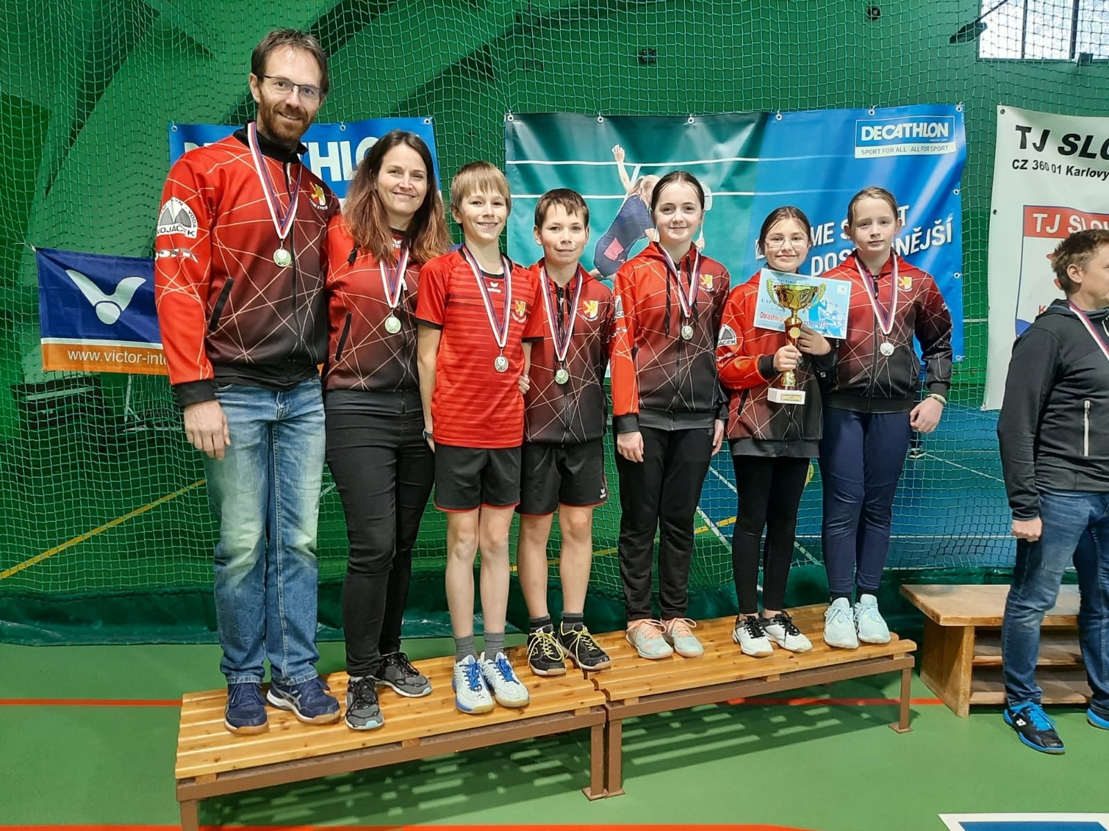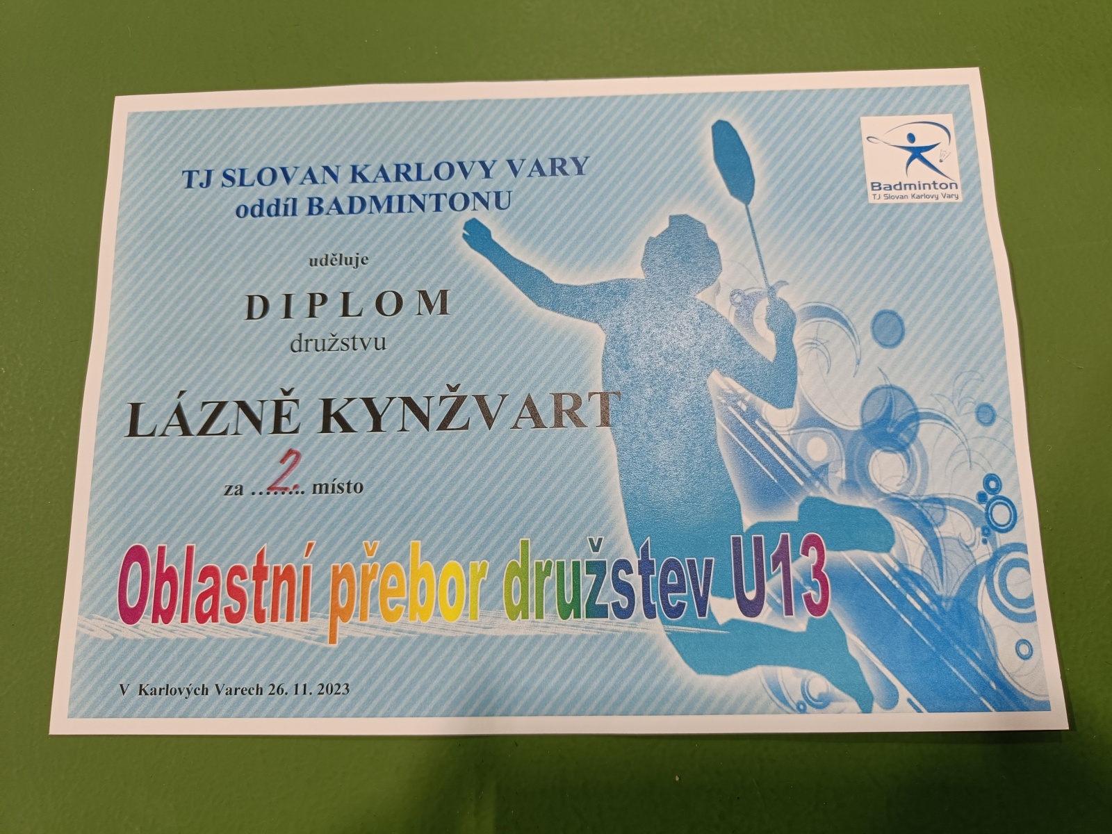V neděli 26. 11. 2023 se v Karlových Varech konal pro nás první přebor oblasti družstev U13. Každé družstvo se skládalo z minimálně dvou děvčat a dvou chlapců kategorie U13 a mladších. Původně jsme měli v plánu sestavit dvě plnohodnotná družstva a zapojit všechny naše hráče U13, ale velká marodka nám plány zhatila a na přebor jsme vyrazili pouze s jedním družstvem ve složení tři dívky (Elenka Brtníková, Majda Martínková, Štěpánka Brtníková) a dva chlapci (Kuba Horák, Niki Placek). Turnaje se po velké absenci Ašských zúčastnila pouze 3 družstva, zato velmi silně obsazená. Hrálo se systémem každý s každým na 5 zápasů (1x singl dívek, 1x singl chlapců, 1x čtyřhra dívek, 1x čtyřhra chlapců a 1x mix). Každý hráč mohl proti každému družstvu hrát max. 2 zápasy, takže velká zodpovědnost stála i na rozhodnutí trenérů, kterého hráče do jakého utkání nasadit.