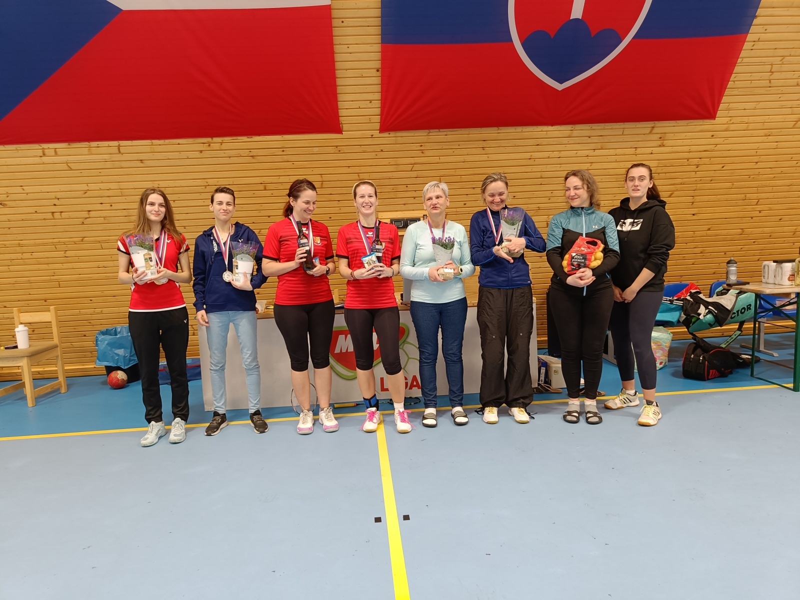 Do čtyřhry žen nastoupilo všech 10 přítomných hráček a utvořilo 5 vyrovnaných dvojic. Domácí dvojice Melišová/Placková byla perfektně sehraná a od svých soupeřek si nenachala sebrat jediný set. I když původně na post nejvyšší domácí nepomýšlely, podařilo se jim porazit i velmi silné duo sester Hauerových a na konečné zlato dosáhnout.