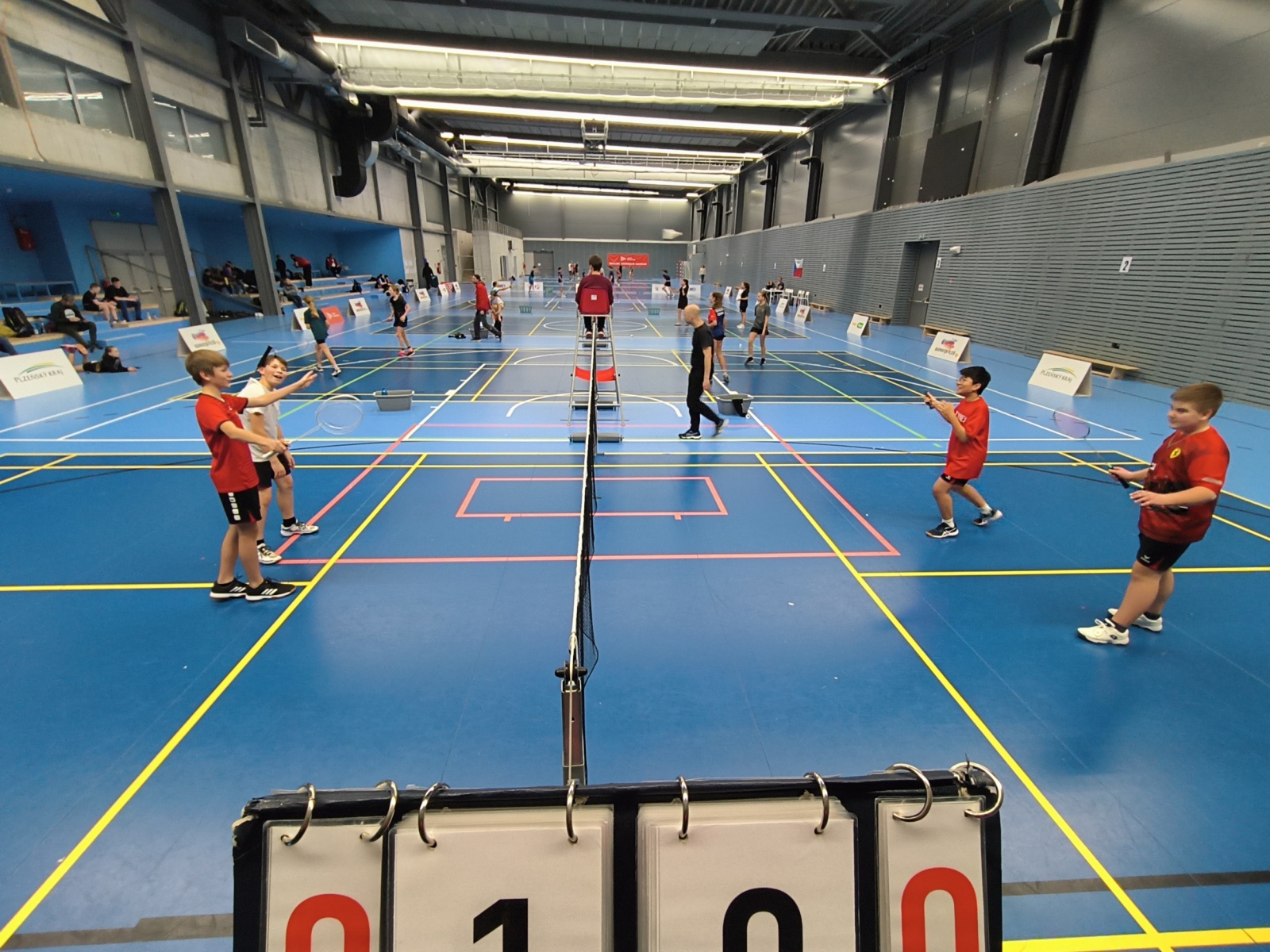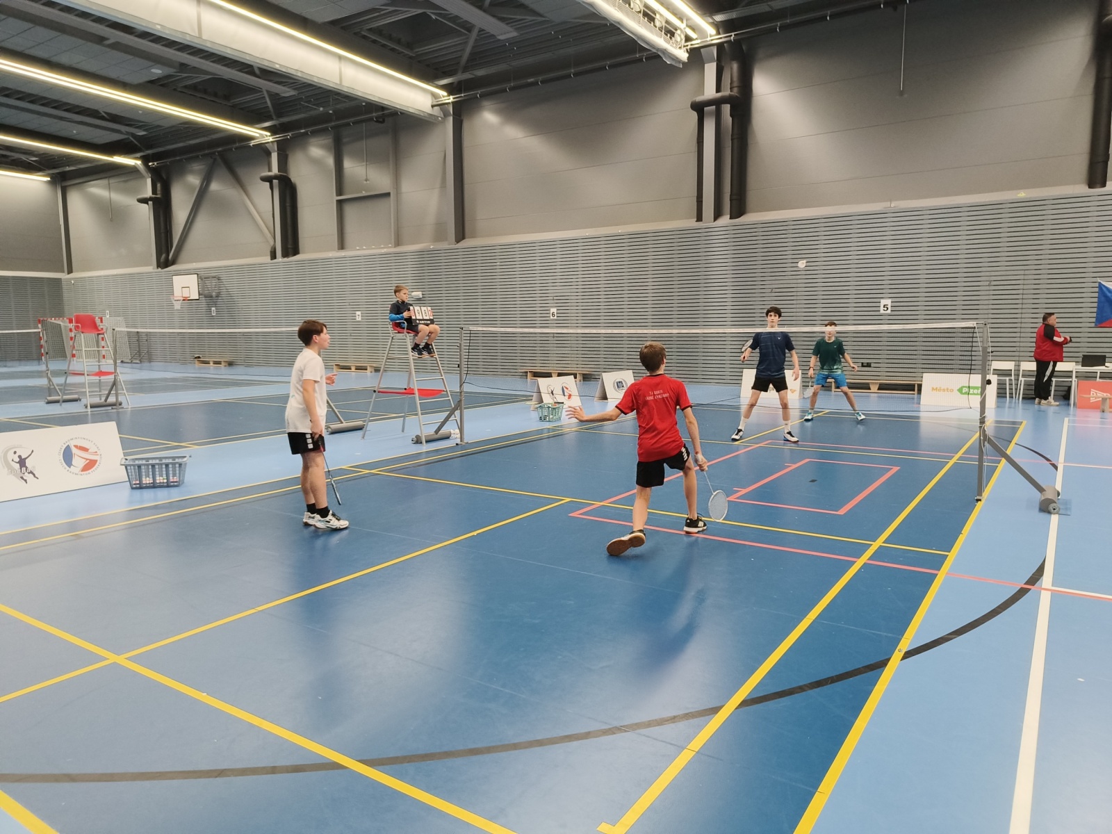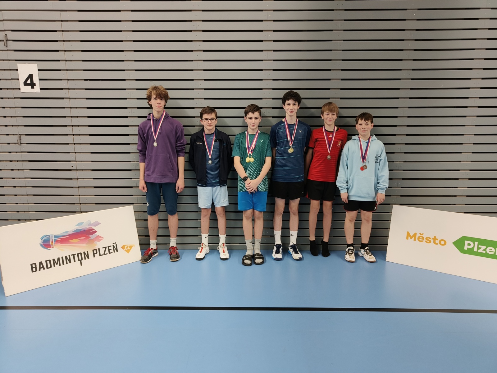 Do čtyřhry nastoupilo 6 párů, hrálo se opět na 2 skupiny o postup do semifinálového pavouka. Kuba s Nikolasem si hravě poradili s plzeňským párem, ovšem duo Bláha/Svoboda (Aš/Karlovy Vary) bylo pro kluky nakonec oříškem s prohrou 15:21 – 23:21 – 17:21. Skupina B byla pro Daniela s Davidem zase naopak šťastná, když si postup zajistili krásným třísetovým utkáním proti Plzeňákům Pečenkovi a Pytlovi (14:21 – 24:22 – 21:17). Postup do finále se nepodařil žádnému našemu páru a nakonec proti sobě sehráli zápas o bronz, který vyhráli Kuba s Nikolasem.