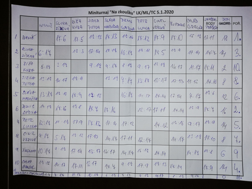Především je nutné vyzdvihnout úctyhodný výkon našeho nejmladšího účastníka Kuby Buchera, který se ve svých 10 letech nebál postavit se v mixu starším a zkušenějším hráčům. Sice se svým otcem Ríšou na přední příčky nedosáhli, ale s trochou chuti do dalšího tréninku nás v budoucnu pěkně prožene.