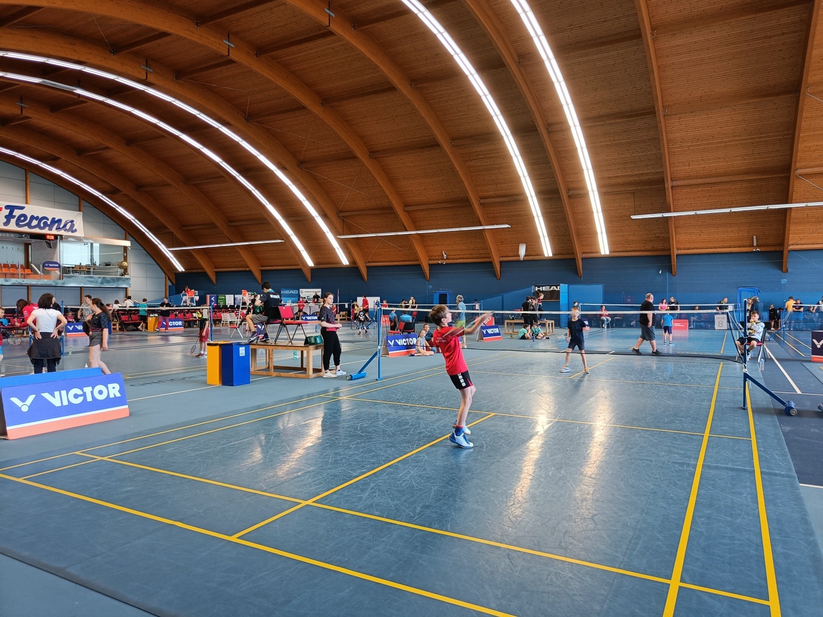 Stream video ze zápasu s Čestmírem Bečkou (Badminton Sharks Brno). Na vedlejším kurtu hraje další zástupce Karlovarského kraje Šimon Matějů (TJ Slovan Karlovy Vary).