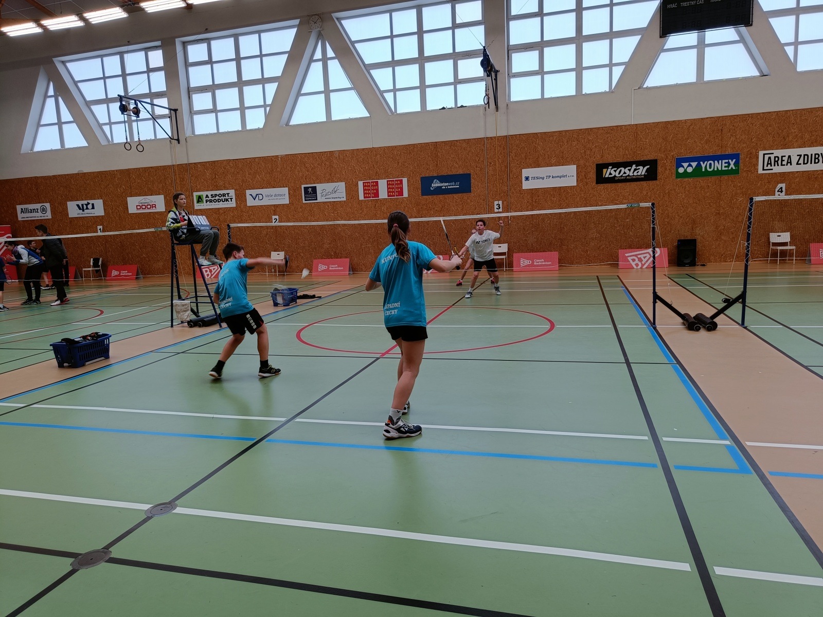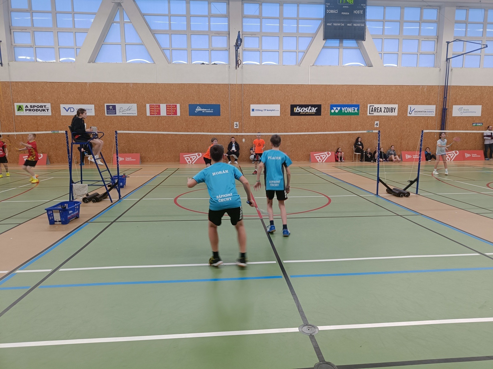 Ve čtyřhrách jsme měli tentokrát ten nejhorší los. Chlapci v prvním kole nastoupili proti třetí nasazené dvojici Jaromír Kotek/David Reichman (TJ Slovan Vesec/Badminton FSpS MU), která nakonec v turnaji nenašla přemožitele a brala zlato. Kluci se v utkání drželi dobře a tomu odpovídalo i pěkné skóre.