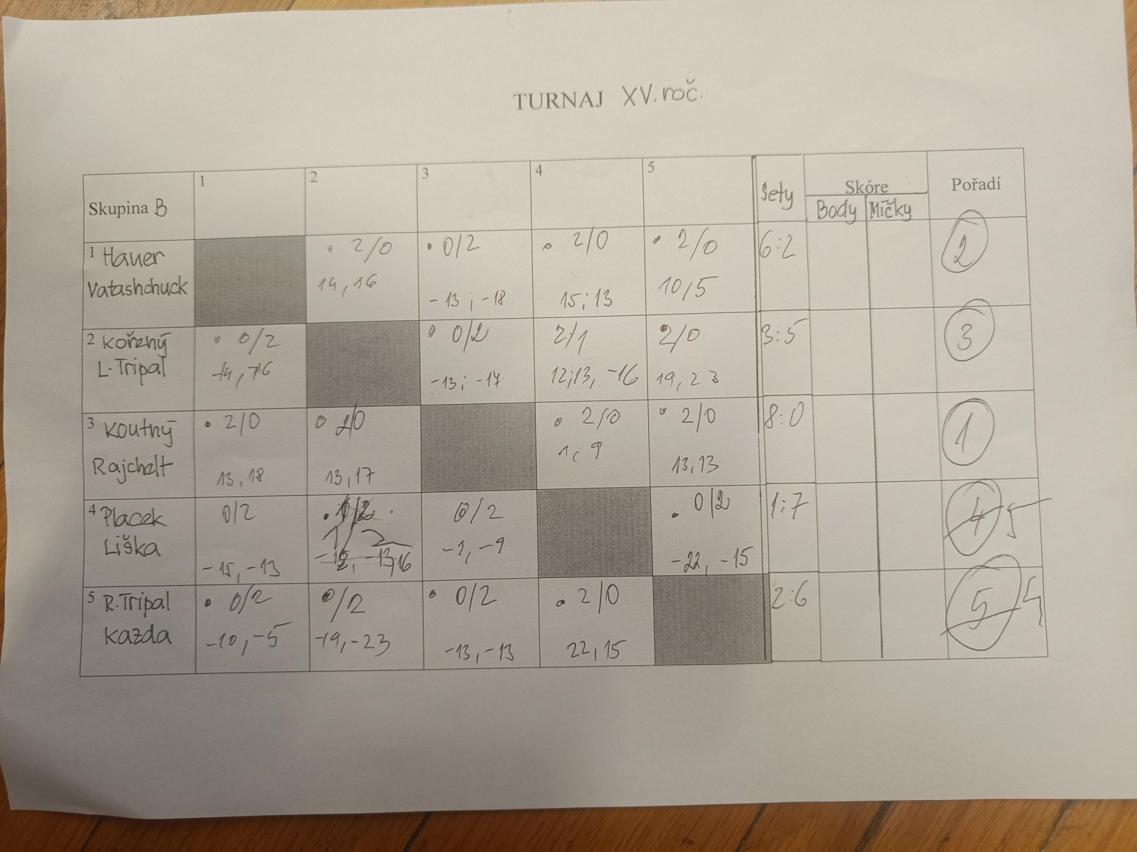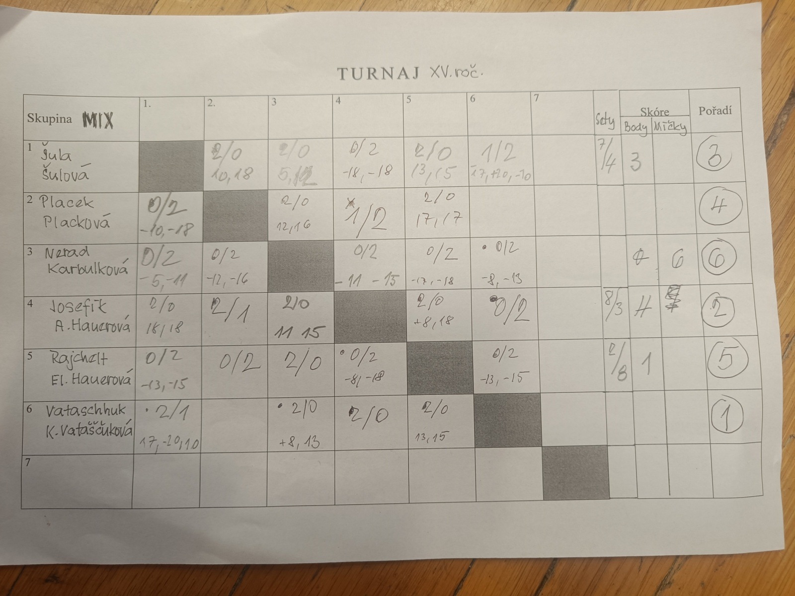 | 1. | Standa / Karel | Vatashchuk / K. Vataščuková | Placková / K. Vataščuk |