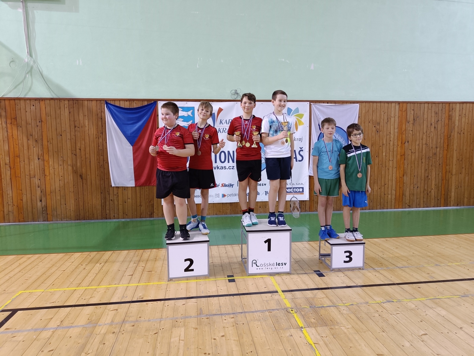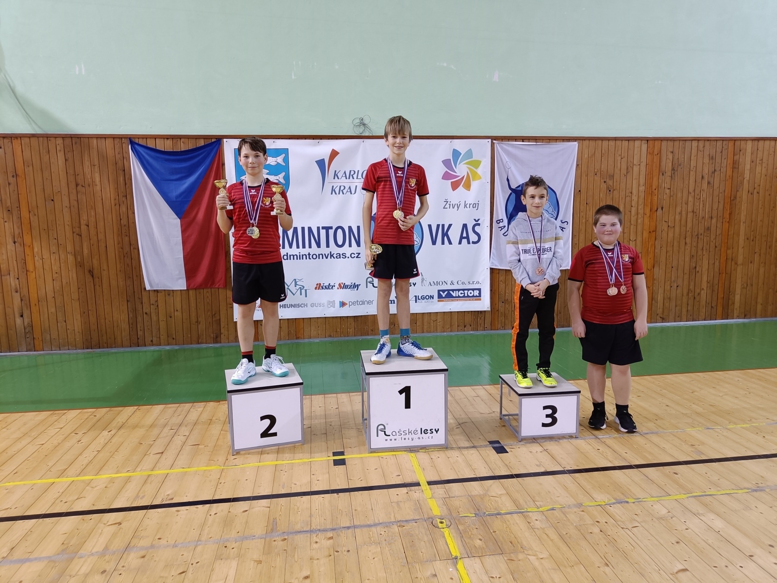 Chlapců bylo 7 a hráli klasicky osmičkovým pavoukem. Všichni tři naši borci prošli hravě prvním kolem. Kuba do finále prošel přes Dáňu, Nikolas přes obávaného Vojtu Macka z Teplic. Kluci si o zlato zahráli jak jinak než na tři sety. Kuba předvedl svou velmi silnou zbraň, a to je pohyb po kurtu. Niki se v prvním setu zalekl stále se vracejících míčů a se svým kamarádem prohrál. Přes velmi narušenou psychiku v obou dalších setech ztrácel, ale v koncovce dokázal zabojovat a skóre otočit ve svůj prospěch. Kluci jsou velmi vyrovnaní a jejich utkání jsou velmi napínavá. Radost pohledět.